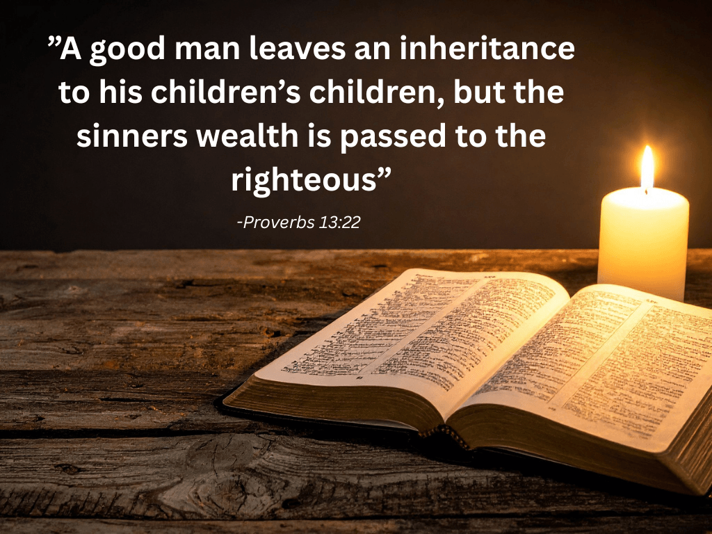 Proverbs 13:22, which says, "A good man leaves an inheritance to his children's children, but the sinner's wealth is laid up for the righteous".
